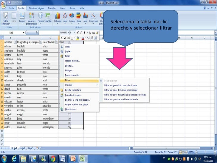 - 9. Selecciona la tabla da clicderecho y seleccionar filtrar
