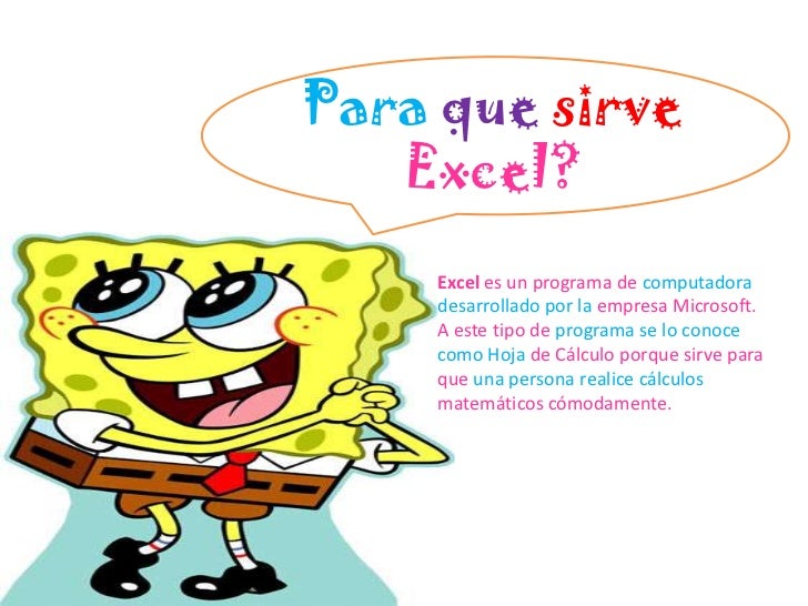 - 1. Para que sirve Excel? Excel es un programa de computadora desarrollado por la empresa Microsoft. A este tipo de programa se lo conoce como Hoja de Cálculo porque sirve para que una persona realice cálculos matemáticos cómodamente.